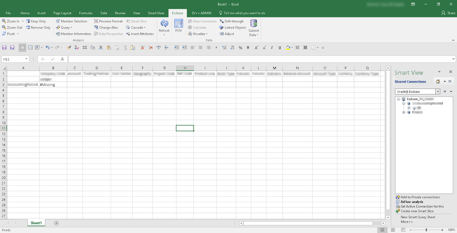 And, there you have it. Open the Smart View Panel. Click on the Shared Connections. After the login. The Panel choices look like this..