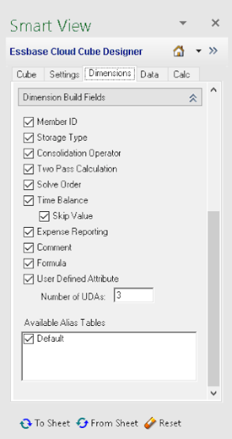And don’t forget about any UDAs that you might want to add, provide how many, or the Alias Table you want to use, check the checkbox