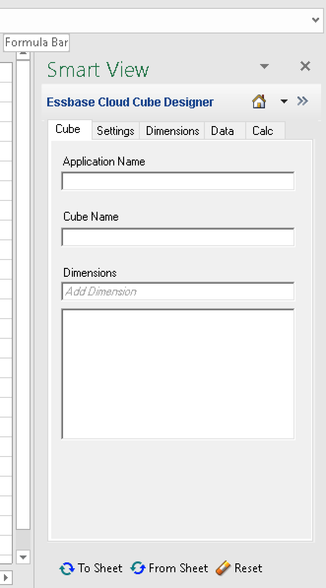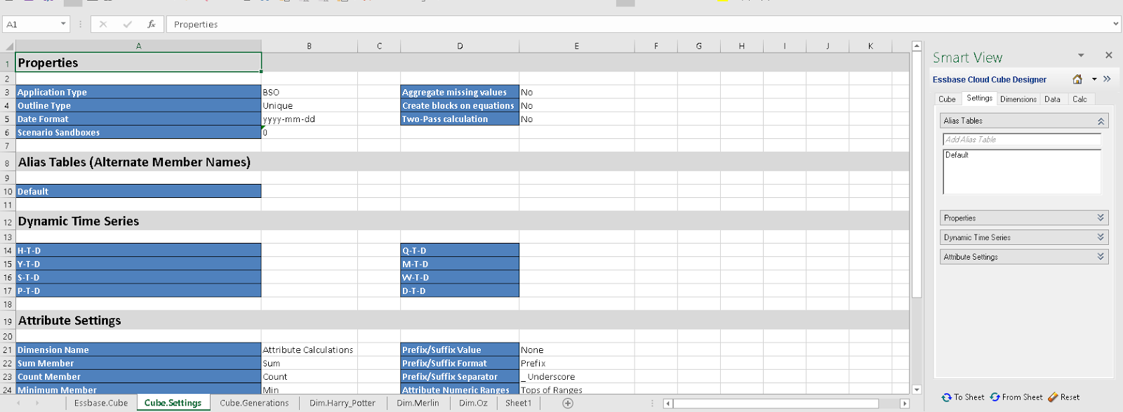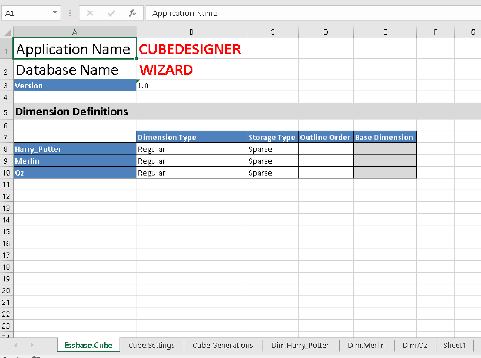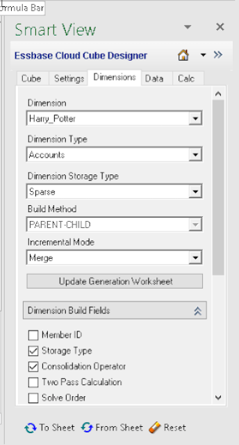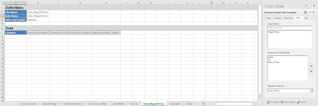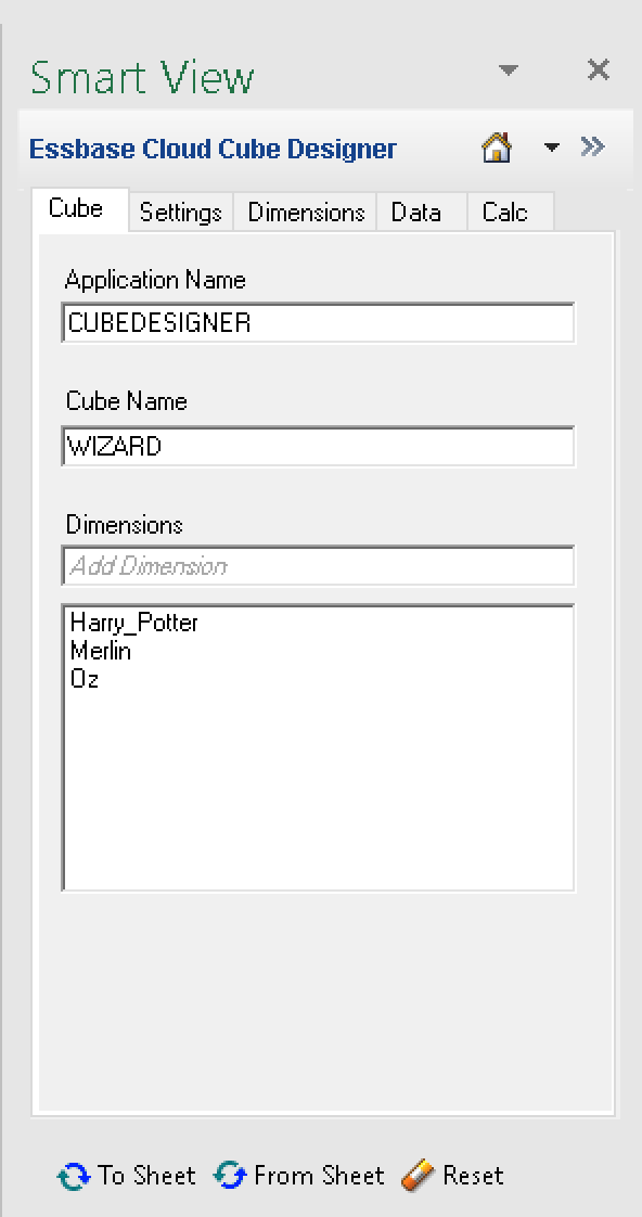 And there are my wizards, I mean Dimensions to the worksheet named ‘Essbase.Cube’