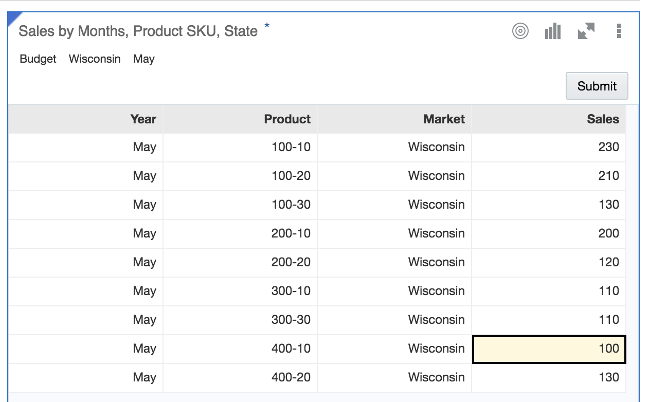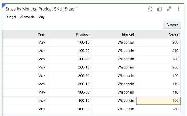 Now your Viz looks more like a reporting grid 😀 .. go ahead and double click a data cell .. and enter/change data .. Click ‘Submit’