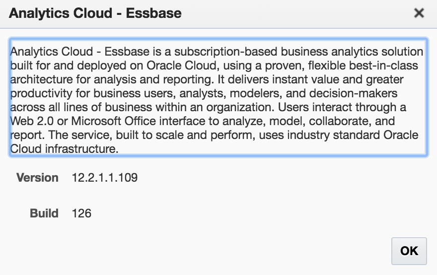 OAC – Essbase patched to version 109 .. skipped right over 108 to specifically Version 12.2.1.1.109 – Build 126