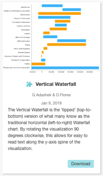 The Vertical Waterfall is the ‘tipped’ (top-to-bottom) version of what many know as the traditional horizontal (left-to-right) Waterfall chart.