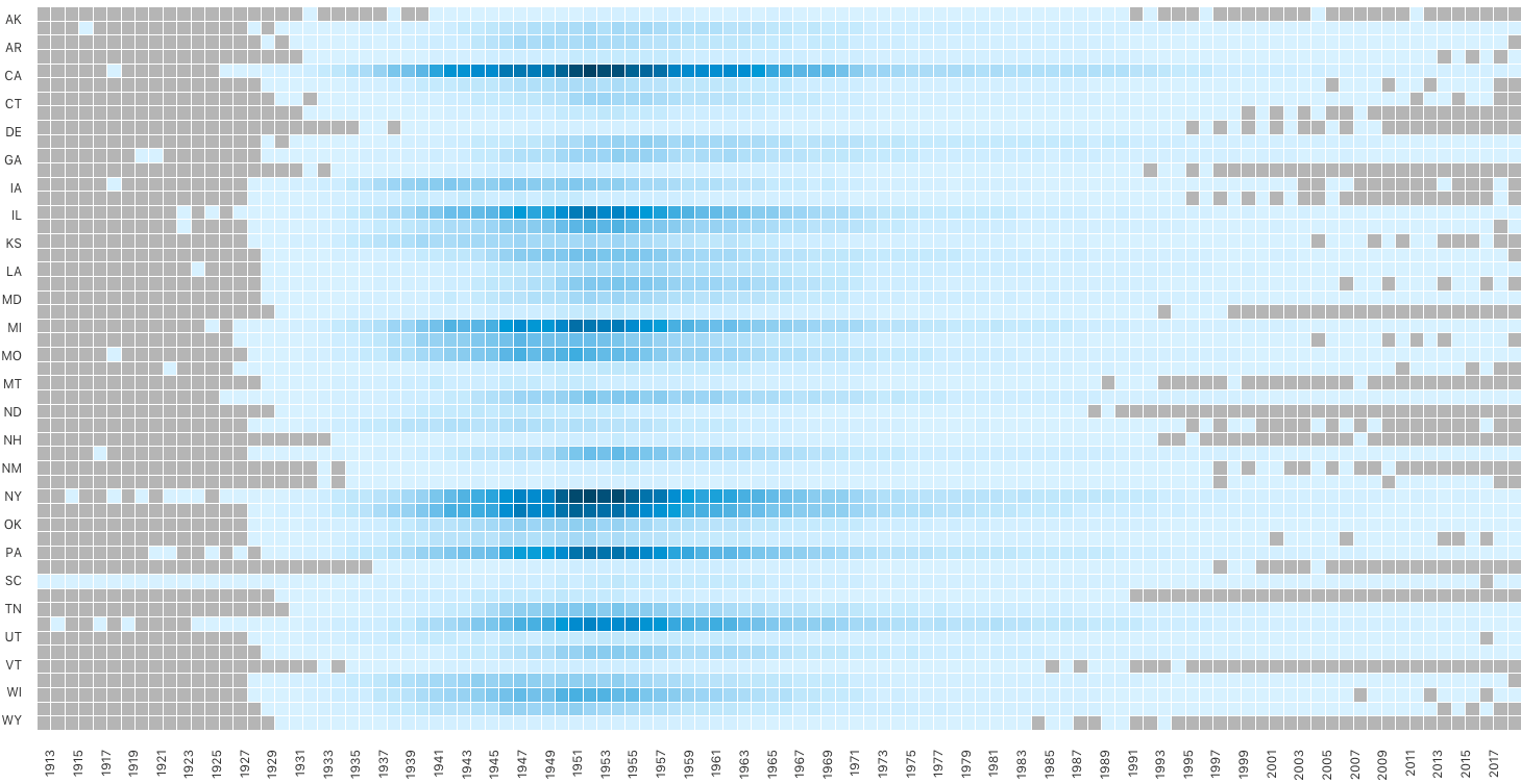 Interesting that the name wasn’t ‘nation-wide’ until 1941 and started to taper off in the 1980s.